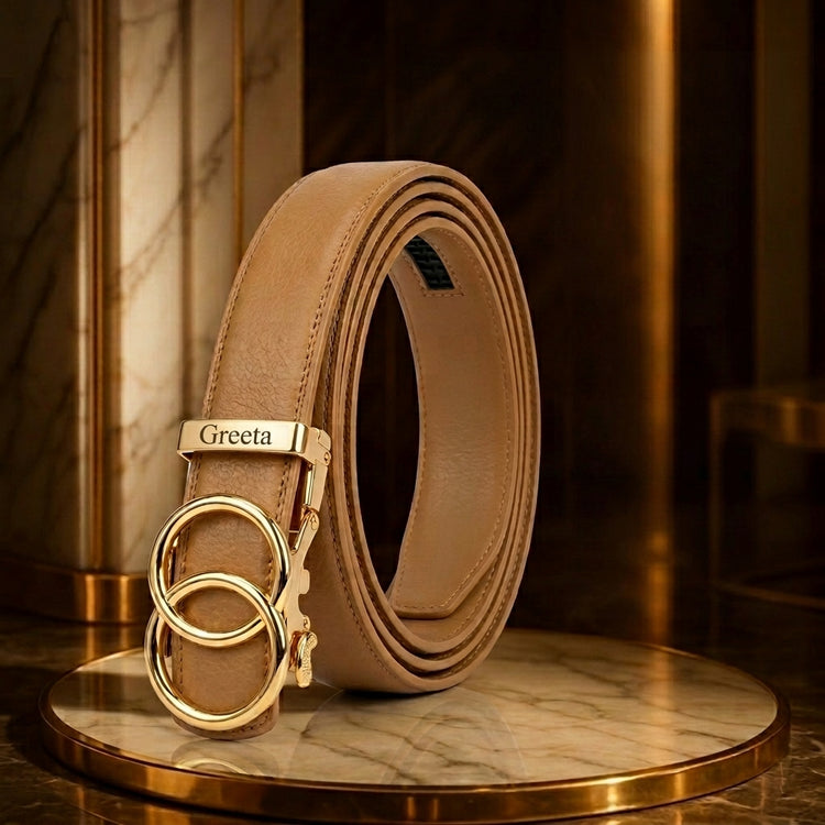 It uses a hidden track system! Just slide it through and it clicks into place at the perfect spot for your waist.